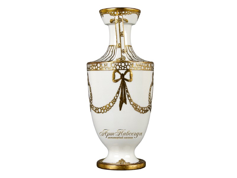 Декоративная ваза для цветов в форме амфоры, выполненная из глазурованного фарфора.