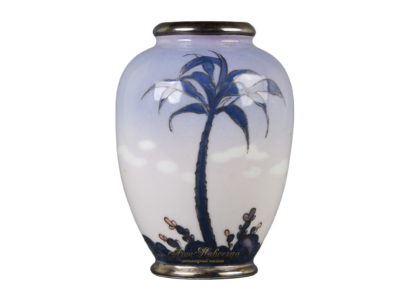 Растения на поверхности вазы и каемки выполнены из серебра 1000-ой пробы.