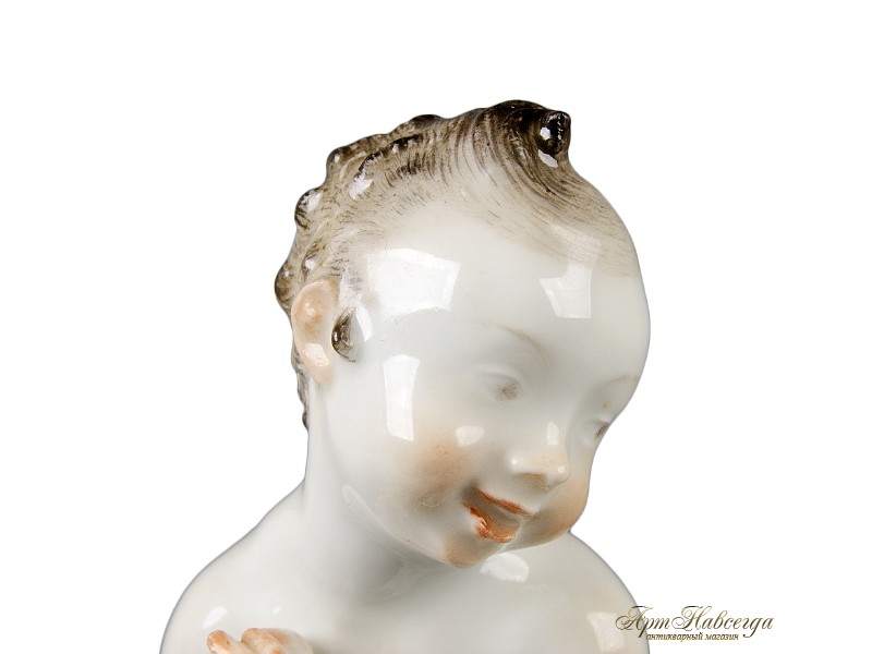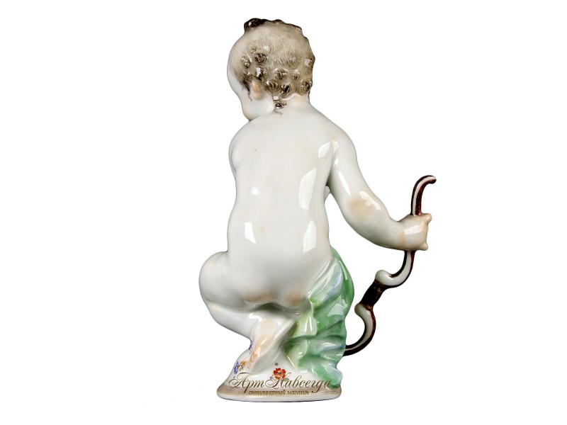 Декоративная статуэтка "Амур с луком", выполненная из глазурованного фарфора.