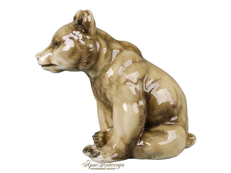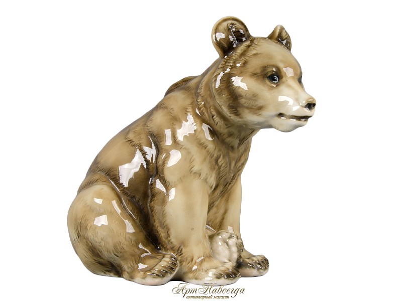 Декоративная статуэтка "Бурый медведь", выполненная из глазурованного фарфора.