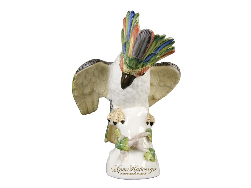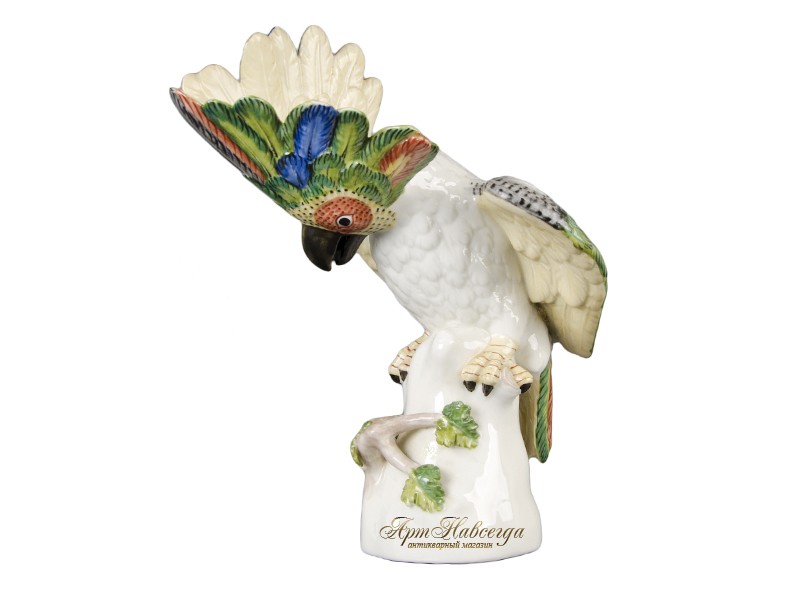 Декоративная статуэтка "Какаду", выполненная из глазурованного фарфора.
