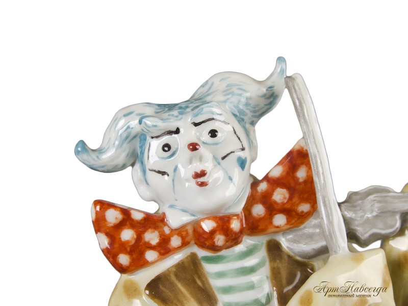 Декоративная статуэтка "Клоун со скрипкой", выполненная из глазурованного фарфора.