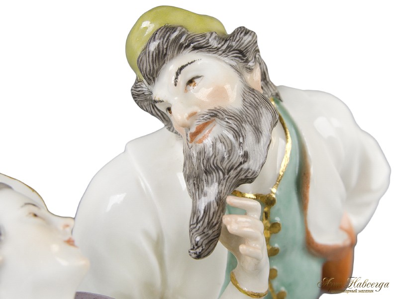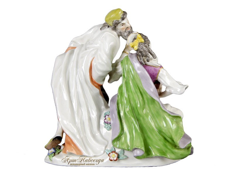 Декоративная статуэтка "Панталоне и Коломбина", выполненная из глазурованного фарфора.