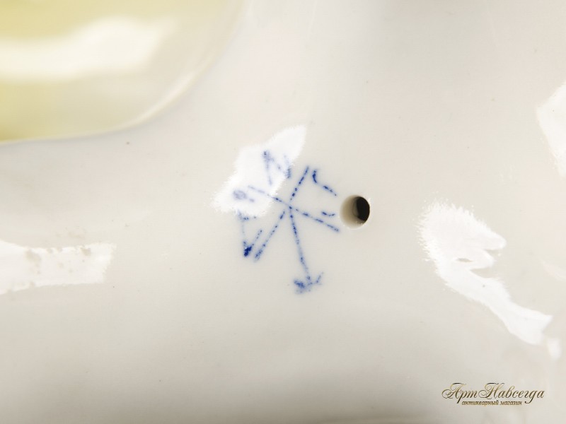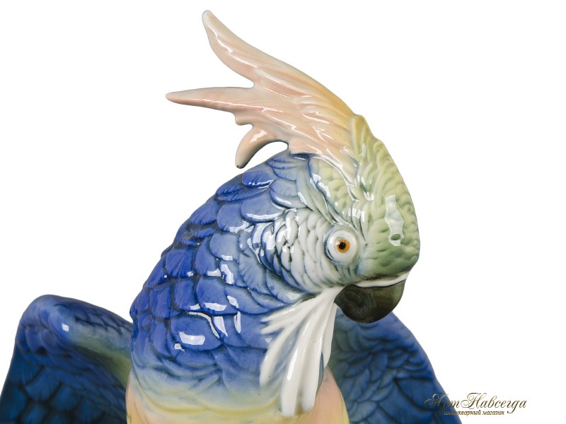 Декоративная статуэтка "Попугай какаду", выполненная из глазурованного фарфора.