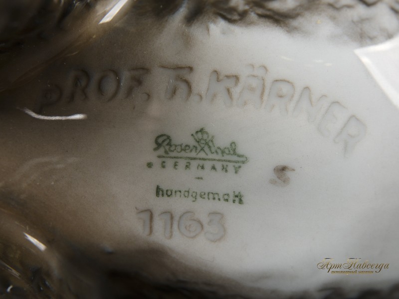Произведена на известной фабрике "Rosenthal". В тесте стоит клеймо автора "Т.Kaerner".