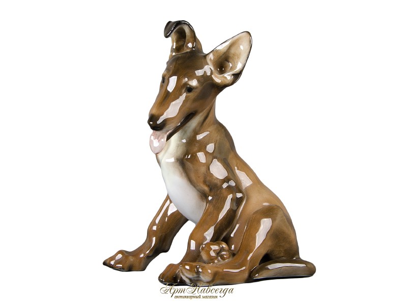 Декоративная статуэтка "Щенок немецкой овчарки", выполненная из глазурованного фарфора.