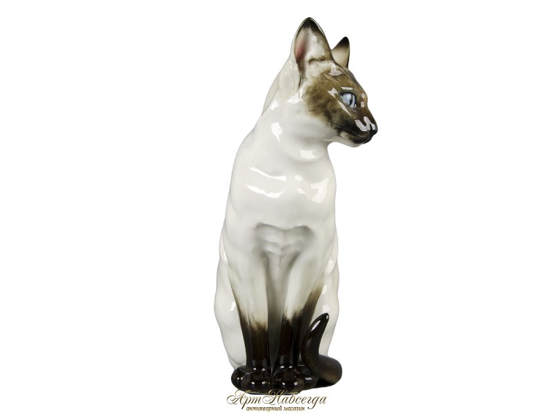 Декоративная статуэтка "Сиамская кошка", выполненная из глазурованного фарфора.
