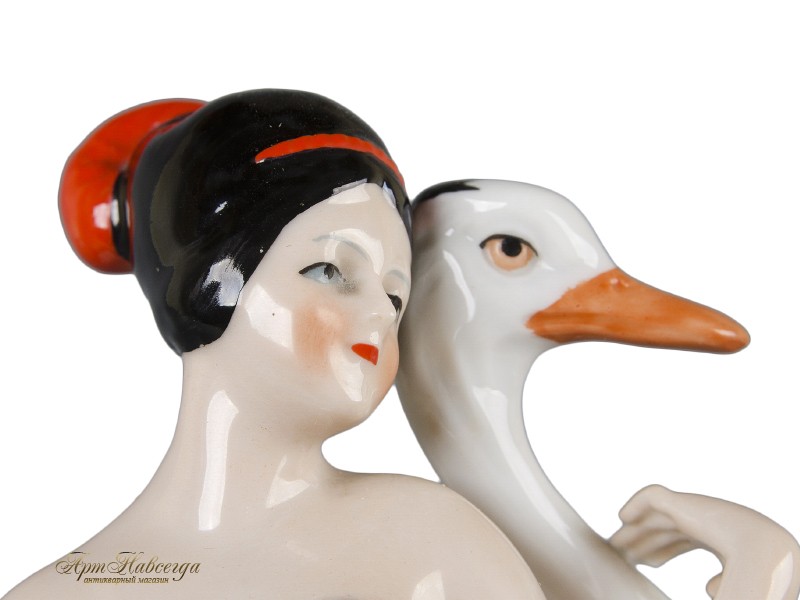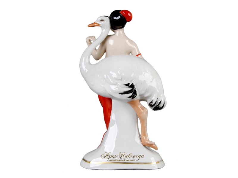 Декоративная статуэтка "Танцовщица и страус", выполненная из глазурованного фарфора.