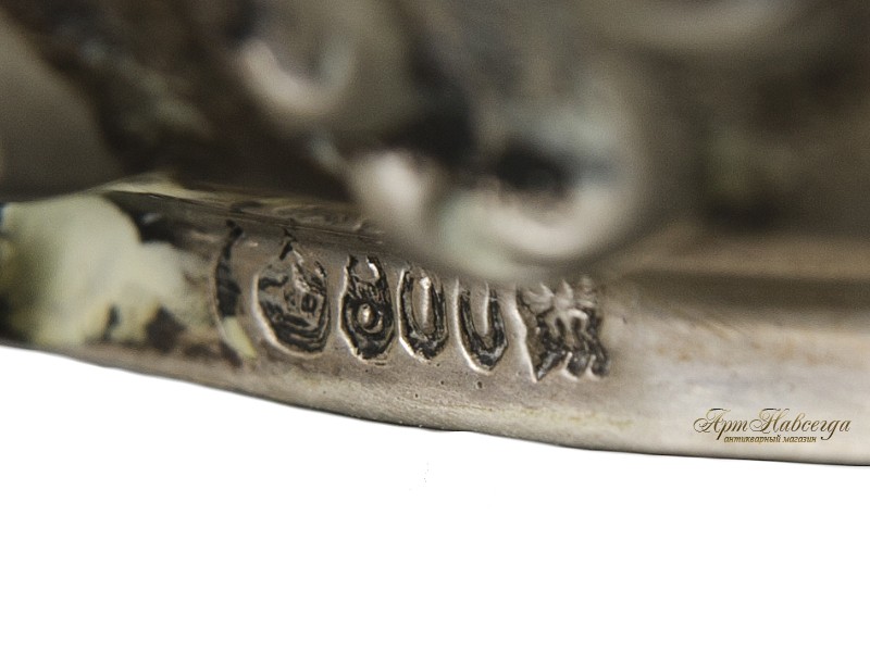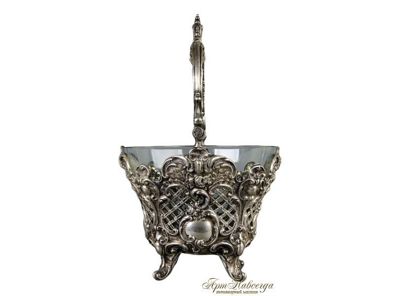 Конфетница со стеклянной вставкой, изготовленная в конце XIX века из серебра 800-ой пробы.